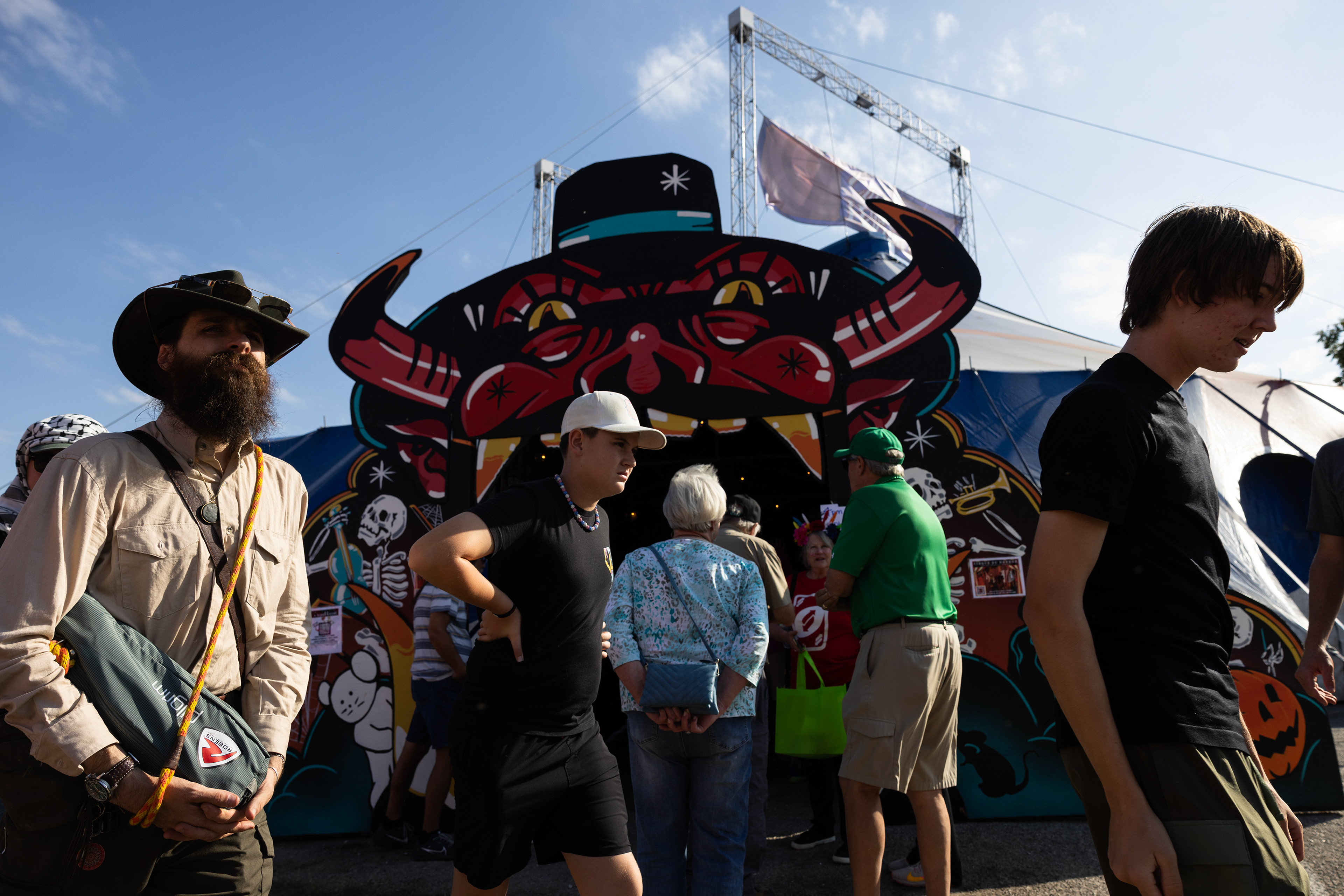 Creatures stir up from around the tent as "This Halloween Night" opens Cirque du Horror on Saturday, Oct. 26, 2024 in Denton, Texas. Cirque du Horror had interactive moments in the show where cast members would be in the audience engaging with people and making the experience more than just watching the stage.