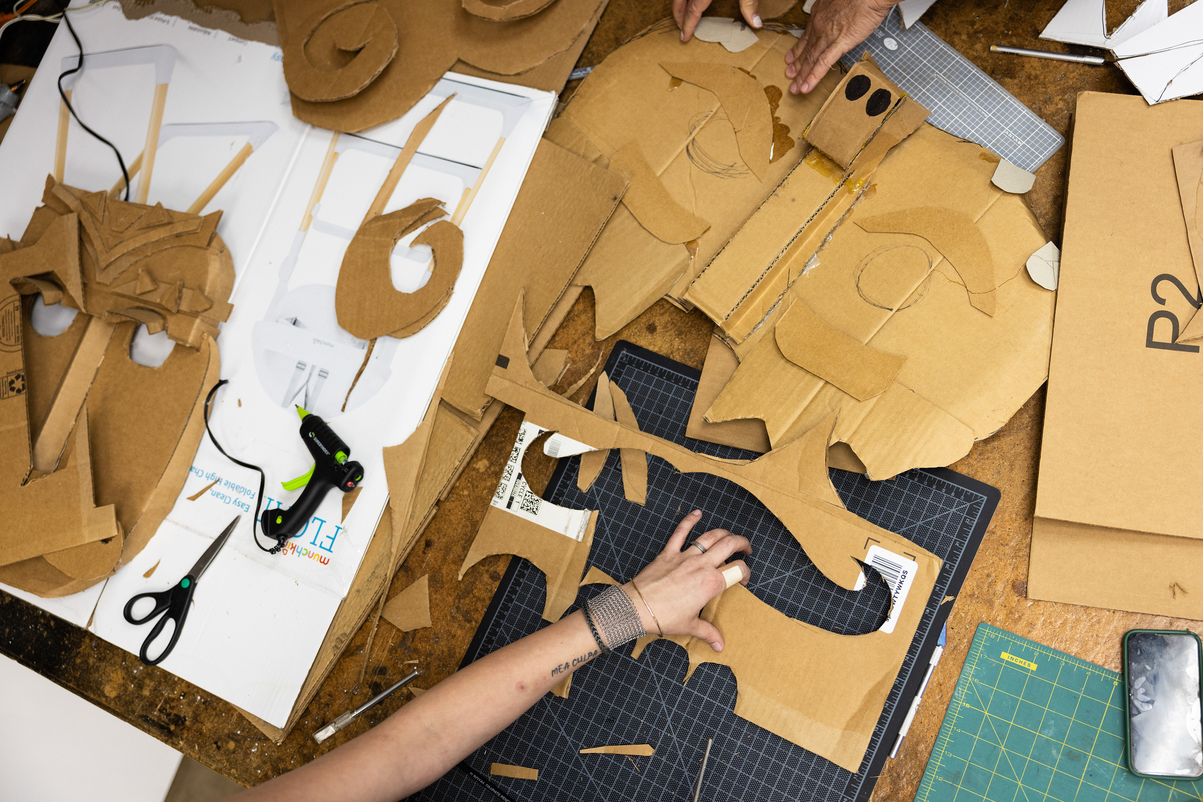Most of the props used in the show were created by volunteers of the staff and cast of Cirque du Horror. Goblin masks were created out of cardboard glued together and sharpies to create definition. "We're building masks right now that... [are] made out of cardboard and they have Sharpie shadowing and stuff like that," Chris Taylor said. "So, I mean, it's got a balance of handmade and elevated, heightened experience."