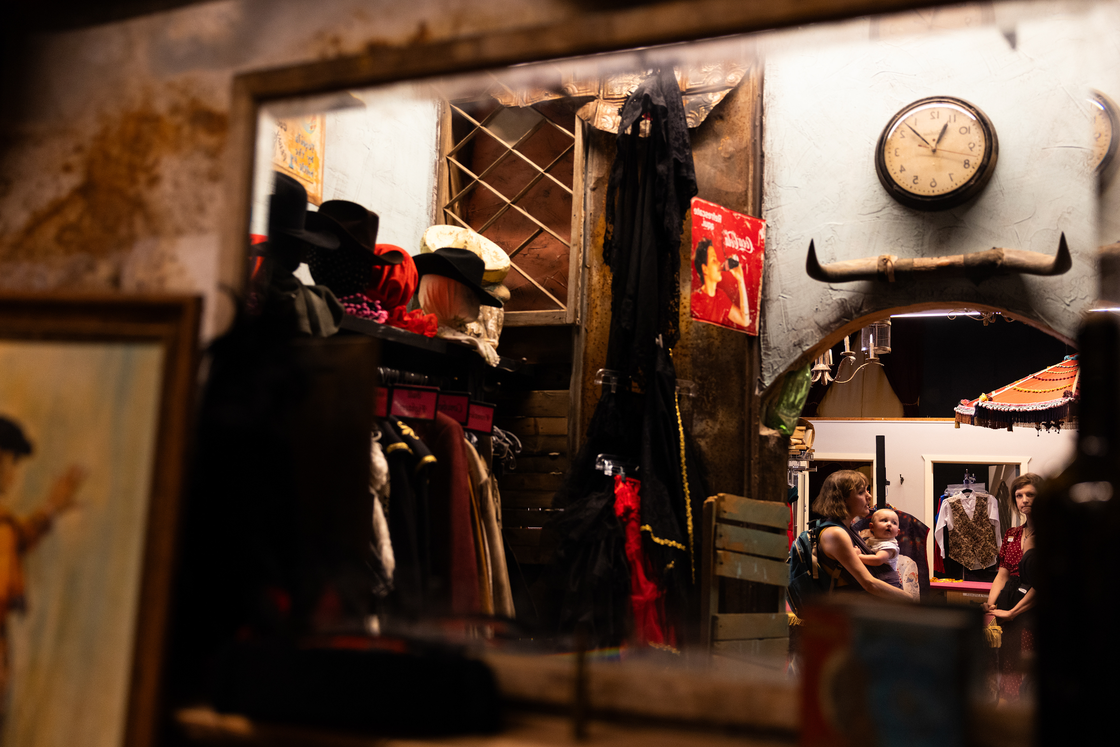 Tara Lynn Hunter and her son visit Rosas Costumes for outfits and props on Friday, Sept. 20, 2024, in Denton, Texas. Hunter spent a few hours at the costume shop looking for the right clothing for each number in the show. For years, Cirque du Horror has used Rosas Costumes for their show. Typically, they had to haul all the clothing from the old location but this year, Rosas moved to the square, providing easier access and transition to the tent.