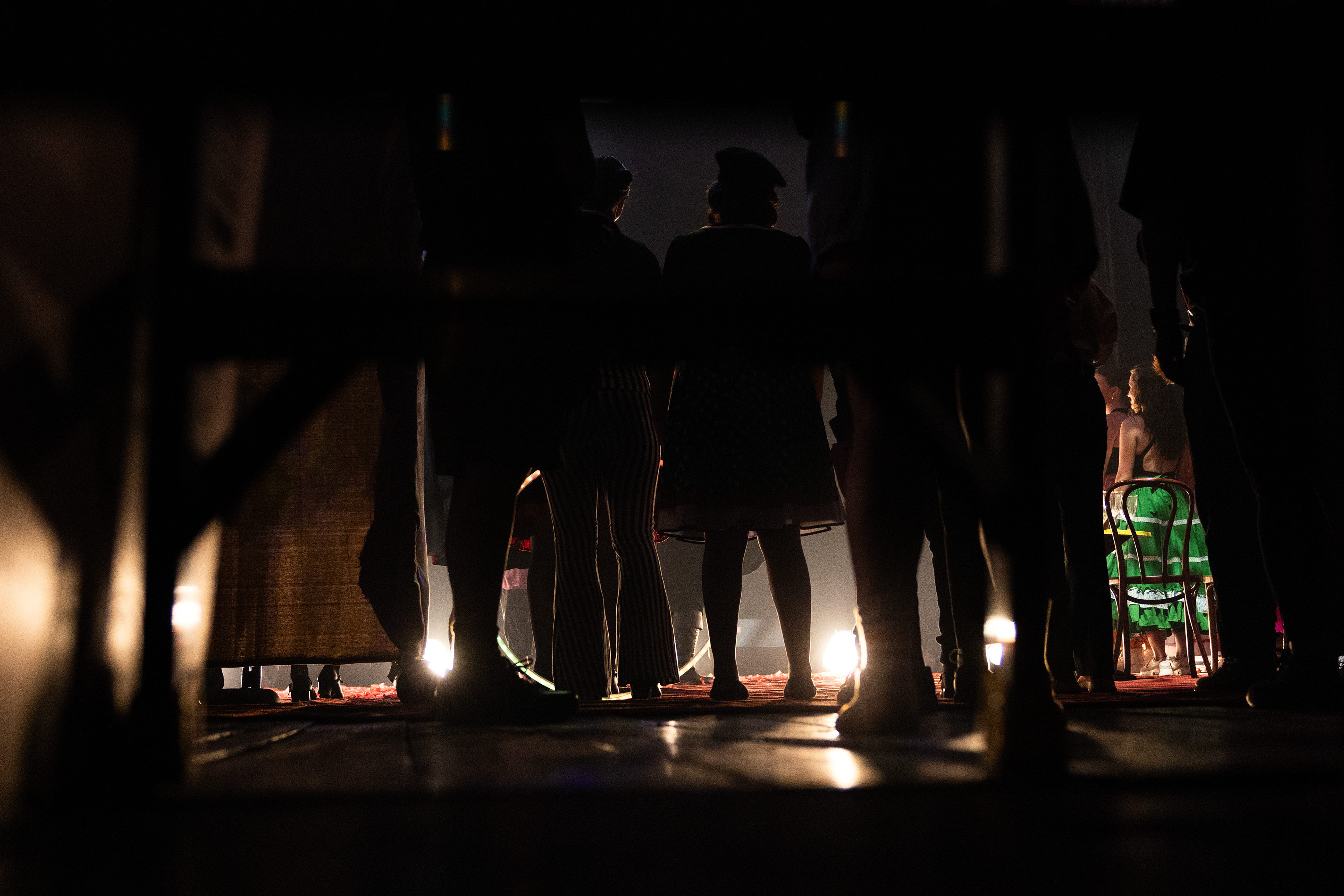 Months of preparation led to three days of constant work for cast and crew members of Cirque du Horror. Light floods the stage from the front of the house as cast members went on stage for bows.